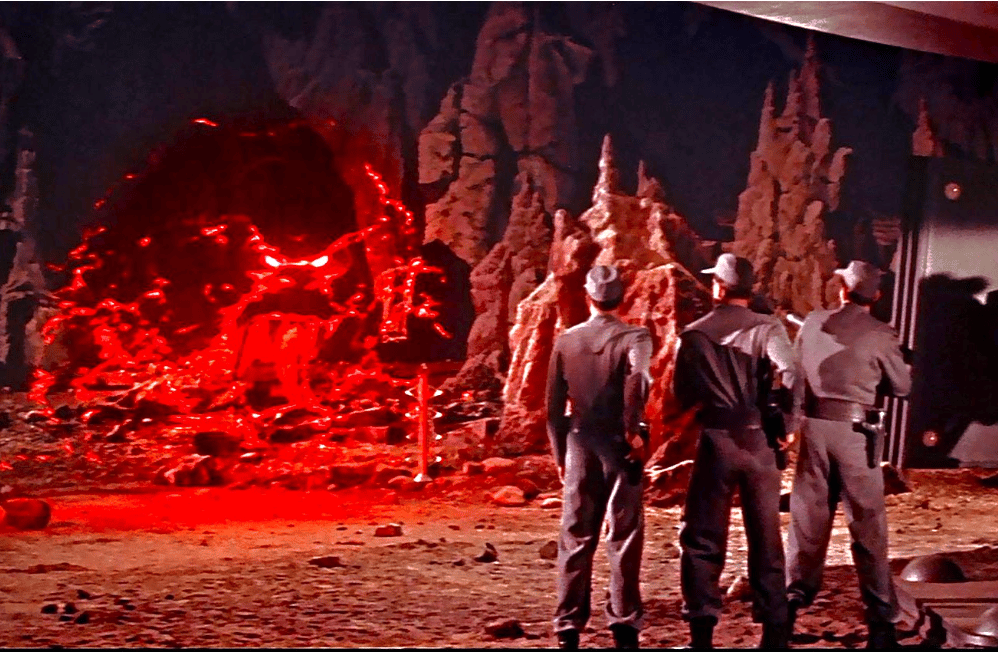 In Forbidden Planet, on the distant world of Altair IV, Dr. Morbius activates the ancient Krell machine, a device that amplifies thought into physical reality. Unbeknownst to him, his unconscious resentment toward the visiting starship crew—fueled by possessiveness over his daughter and buried intellectual arrogance—manifests as an invisible, rampaging beast. The monster is not external; it is Morbius’s own id, given monstrous form by technology far beyond his conscious control. The parallel is striking: Trump did not “create” the cultural monster he became; rather, he served as a conduit for energies already latent in the American collective. The “machine” here was not Krell super-science but the modern media ecosystem—24-hour cable, social platforms, algorithmic amplification—that turned every impulse into spectacle. Trump’s very presence seemed to externalize what polite America had denied: the hunger for dominance, the thrill of transgression, the resentment of the dispossessed. He was the id-monster made flesh, stomping through the drawing rooms of the Republic.